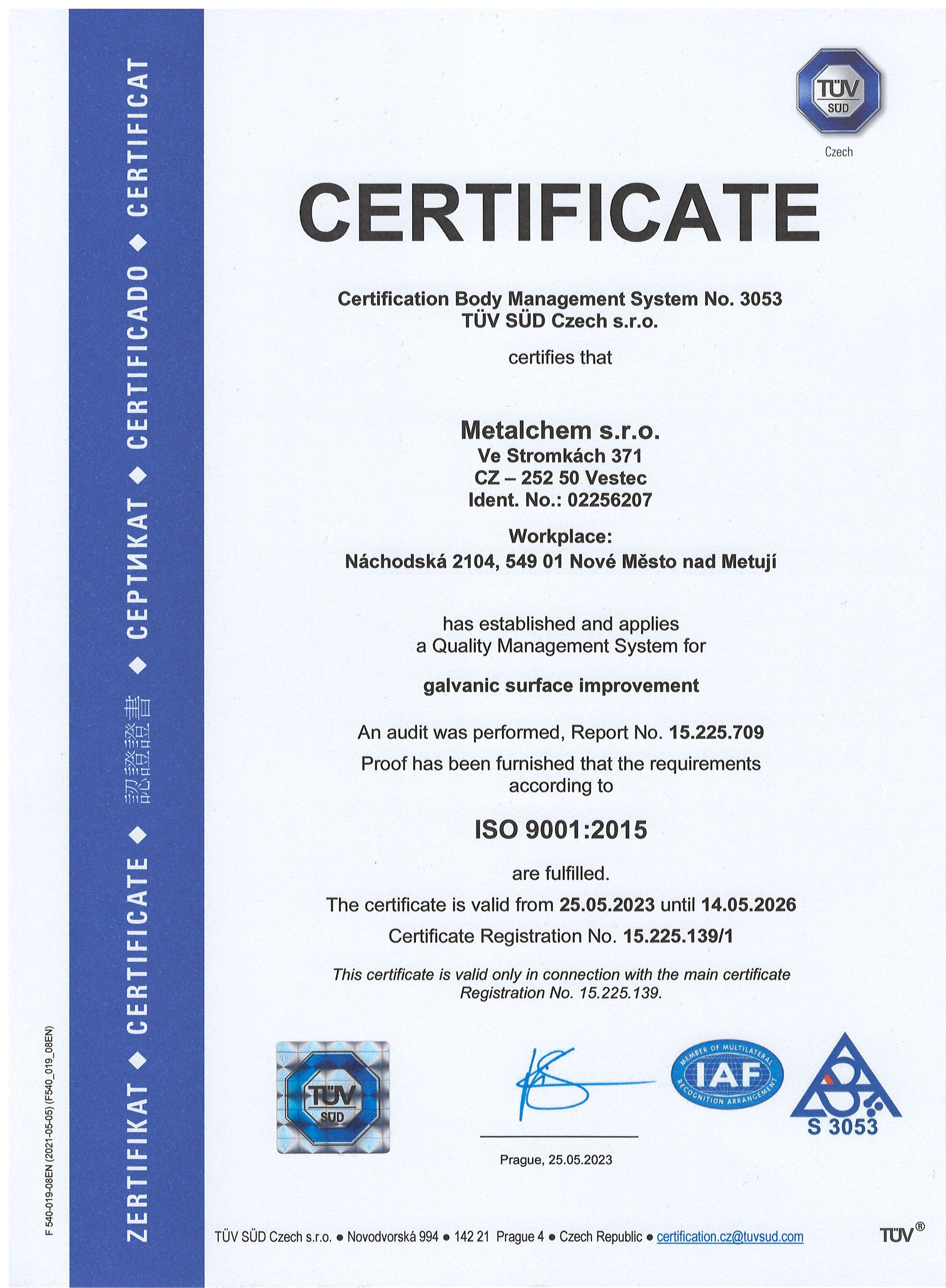 Společnost METALCHEM s.r.o. má 30-letou tradici a od samého počátku je její činnost zaměřena na povrchové úpravy kovů.